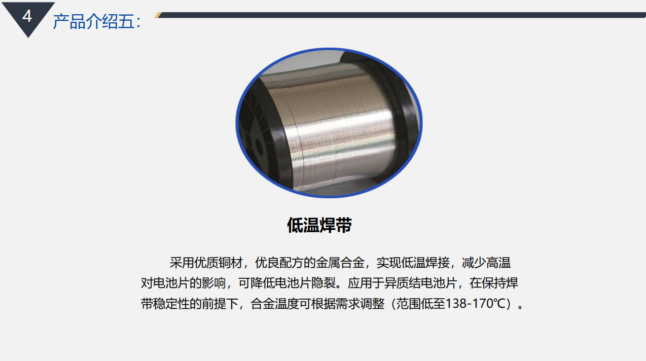 汇流带 黑色焊带/冲孔焊带 MBB/SMBB焊带 低电阻焊带 低温焊带 反光焊带 微细圆形焊带